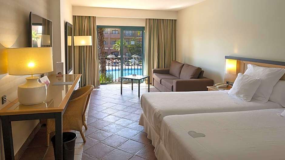 The spacious double room features air conditioning, a private entrance, a terrace with pool views as well as a private bathroom boasting a bath. The unit has 3 beds.